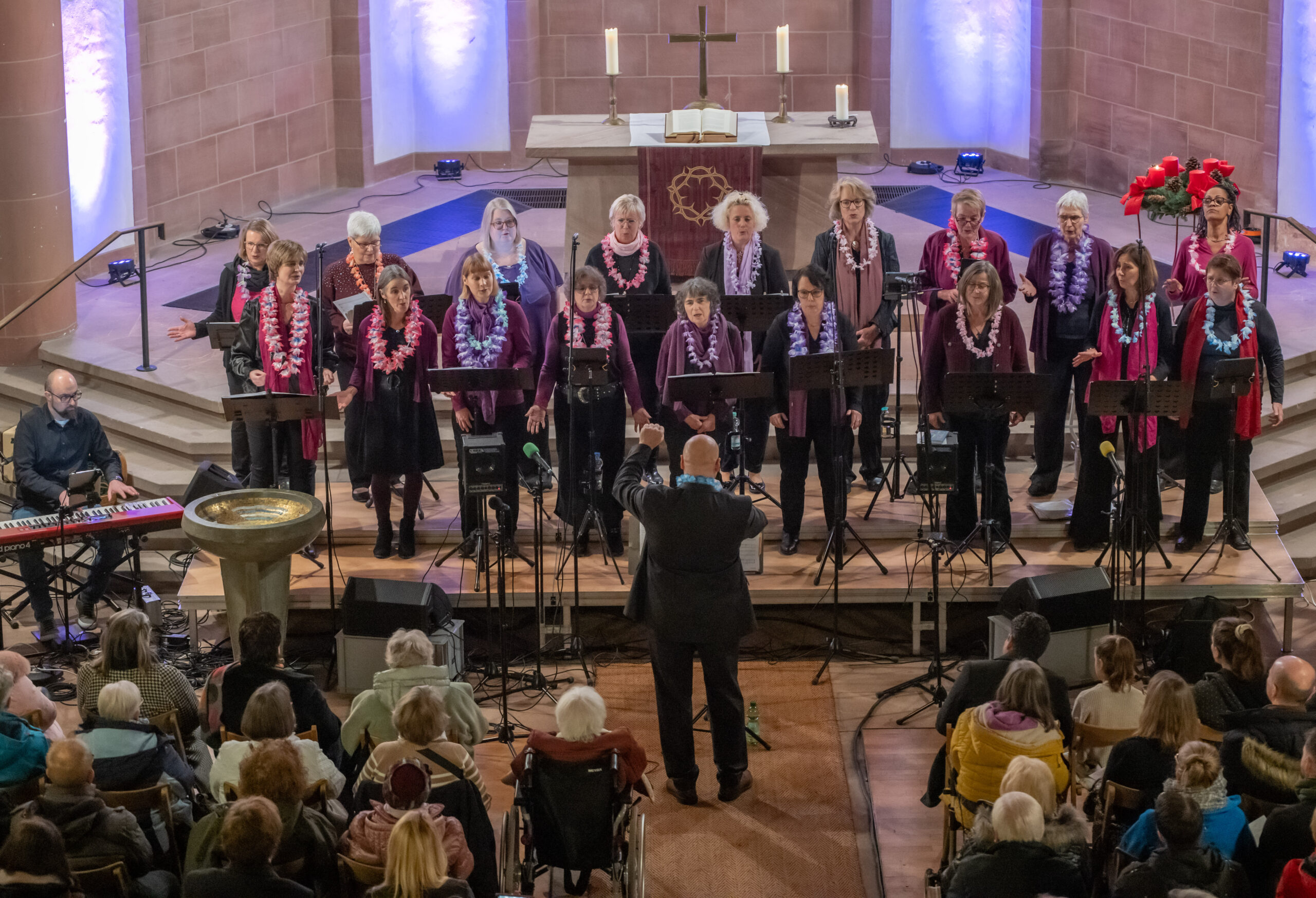 Unser Frauenchor ist vielseitig besetzt: Sopran, Alt, Tenor und sogar Bass sind vertreten – Stimmen voller Persönlichkeit und Tiefe.